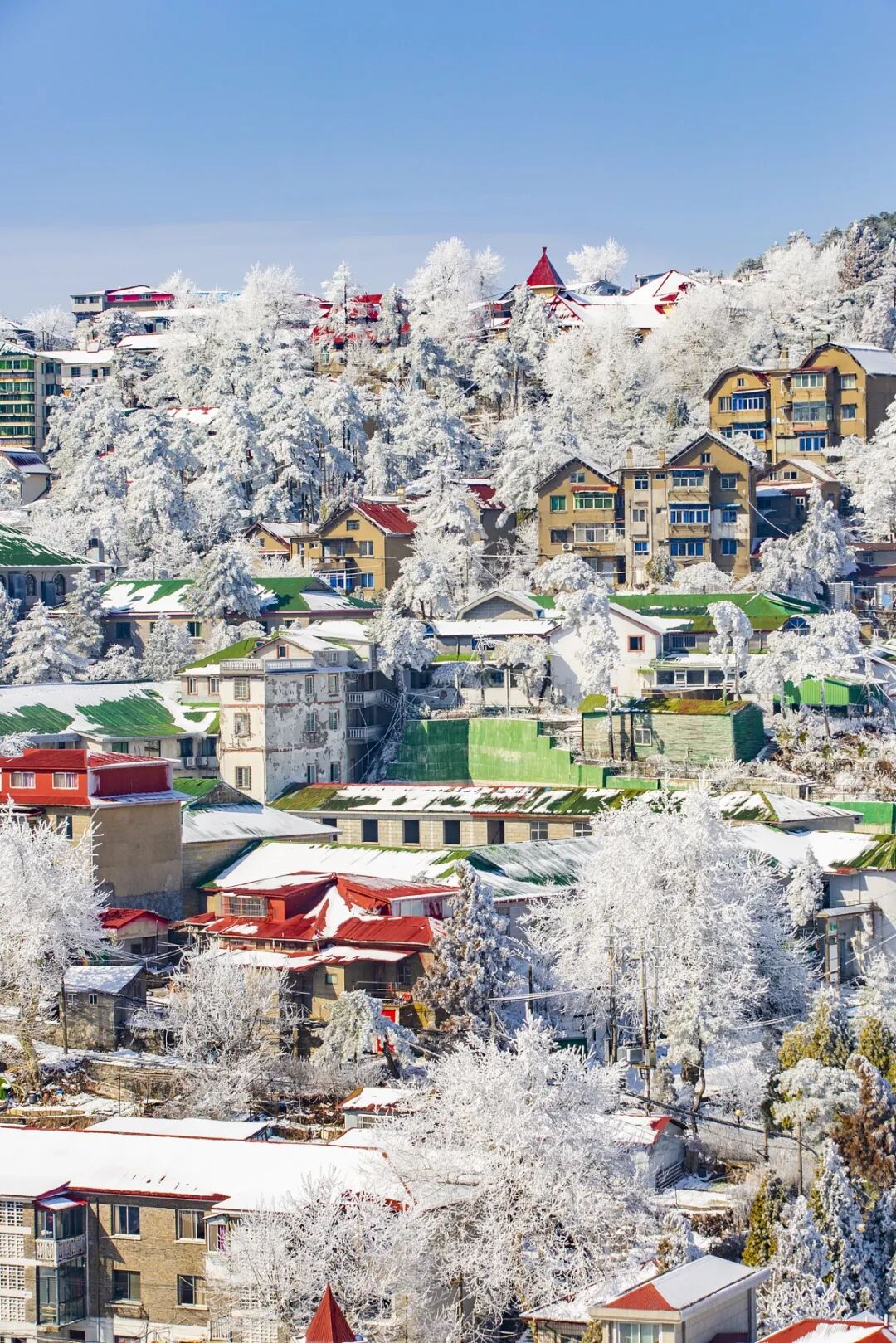 庐山的气象更增添了它的传奇。冬季大雪常至膝盖深,山色一夜从江南变成北国。每年冬末初春,庐山高频出现雾凇与雨凇,树木覆上如冰糖般的透明薄层,与梅花、杏花、桃花一同绽放,形成独有的“冰糖裹花”景象。云雾、飞瀑与冰雪叠加,让“横看成岭侧成峰”在这里成为日常风景。