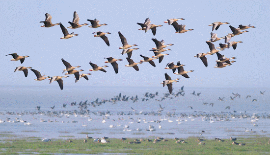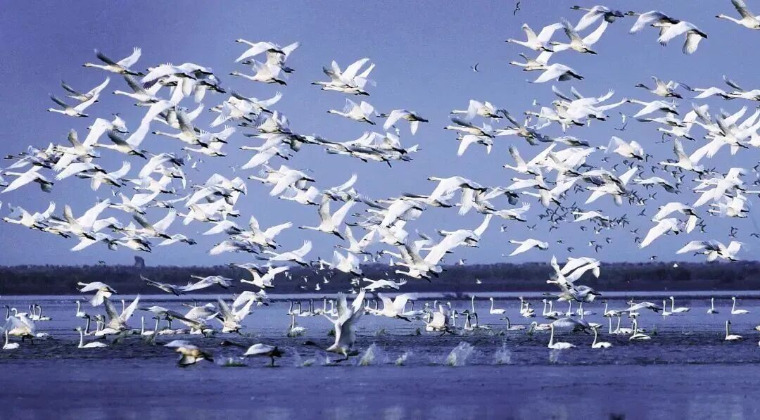 作为中国第一大淡水湖,鄱阳湖的冬天是候鸟的主场!每年10月至次年 3月,数十万只候鸟从北方飞来越冬,白鹤、天鹅、大雁成群结队,或在湖面嬉戏,或在滩涂栖息,场面震撼到失语。