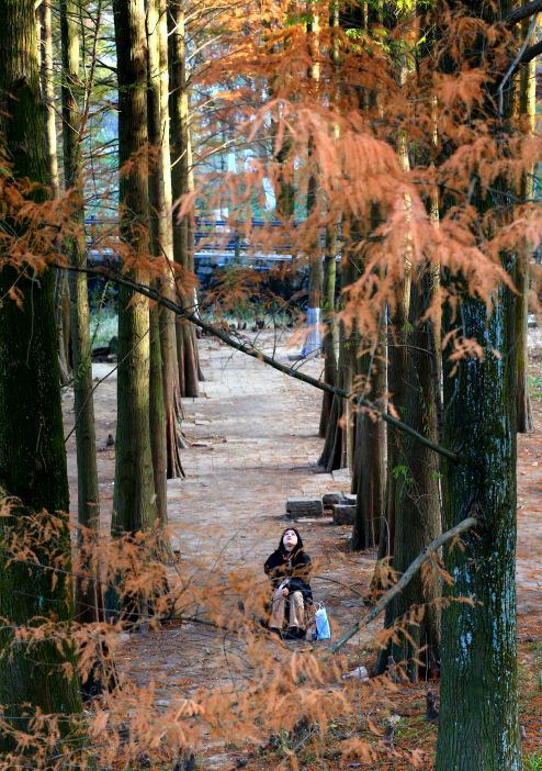 冬天的九江,不仅有素雅的白,更有热烈的 “美拉德色”—— 金黄的银杏铺满大地,火红的水杉挺立湖畔,阳光洒下时,枝叶间跳动的光影,像把整个秋天的温柔都留了下来,随手一拍都是氛围感大片。