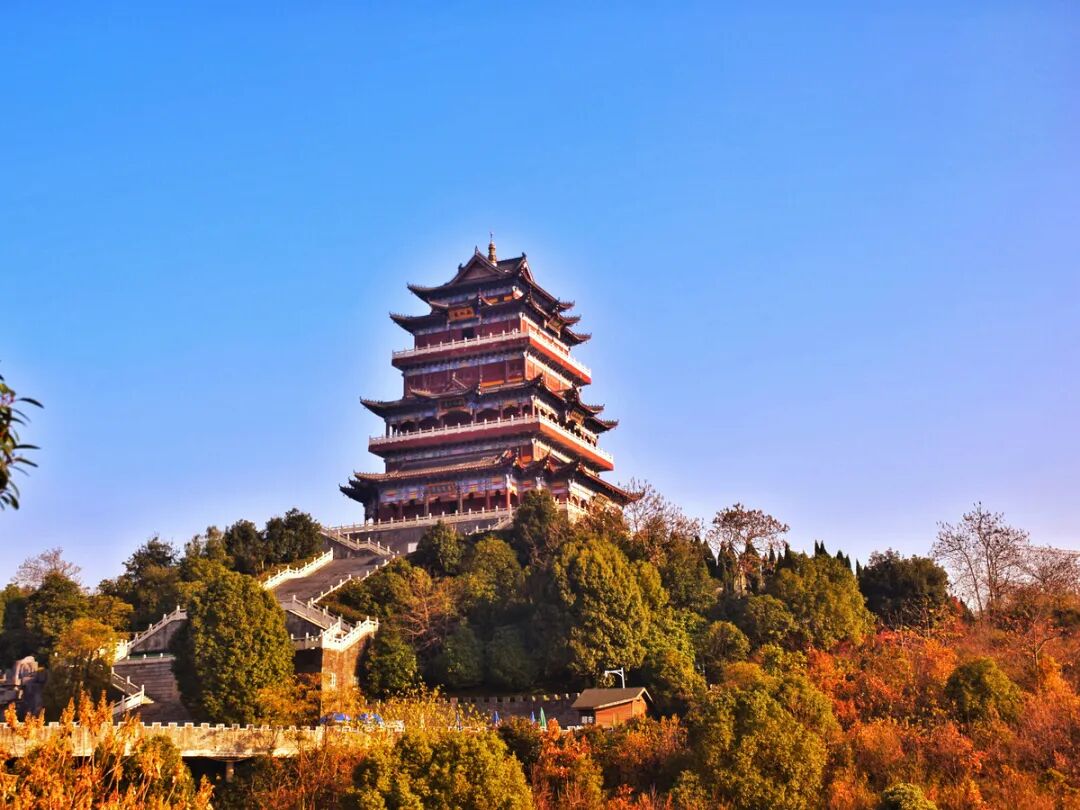 登上公园内的远心亭,可俯瞰整座九江城,也是在城区看日出的首选之地。