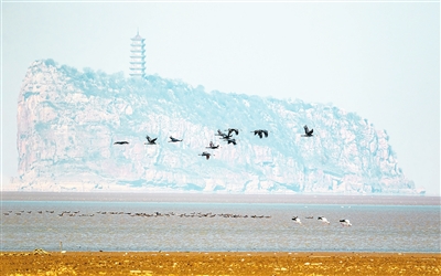 近日,八里湖湿地迎来一年一度的候鸟迁徙高峰,数千只大雁在此集结,与珍稀的东方白鹳共同构成一幅生机勃勃的生态画卷。作为候鸟迁徙路线上的重要驿站,八里湖湿地以其丰富的食物资源和良好的生态环境,吸引了众多候鸟驻足。(九江日报全媒记者 欧阳海员 摄)