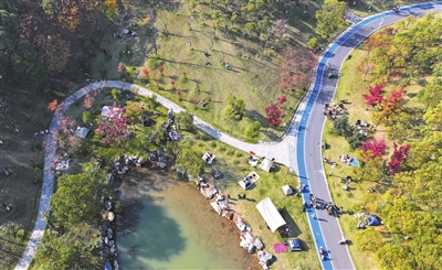 近日,冬日里的九龙山森林公园在暖阳照耀下披上斑斓色彩,大量市民携家带口前来感受自然,湖边的草地上帐篷星罗棋布。近年来,随着城市公园建设的不断完善,利用周末时间走进自然、享受“微度假”,已成为越来越多九江市民的生活新方式。(九江日报全媒记者 刘 家 摄)