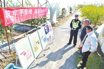 近日,九江市公安局交管支队柴桑大队组织民辅警走进辖区果园基地开展“话安全 护丰收”主题普法宣传活动。活动通过面对面“拉家常”式讲解、以案说法等形式,向果农普及交通法律法规,牢记交通安全知识,增强安全意识。 (李浩 九江日报全媒记者 张驰 摄)