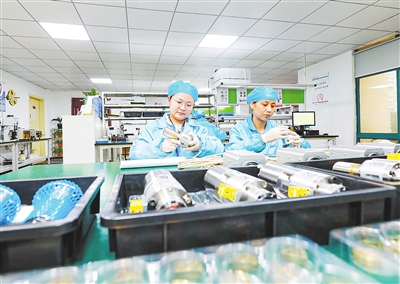 作为省级“专精特新”中小企业,九江汉唐光电传输技术有限公司深耕导电滑环研发制造领域,不断强化产品创新,已发展为国内高速滑环领域的先进企业。迈向“十五五”,该公司将重点开展高速转子信号传输、无线激光遥测、温度与微力学等方向的研发建设,着力打造国内领先的电接触基础技术研究人才中心,奋力实现发展规模和专业人才建设“双突破”。图为企业员工正在检测产品。
