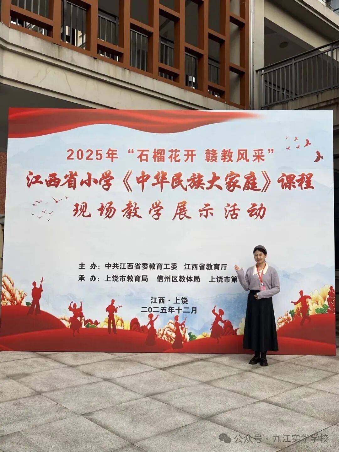 九江新闻网讯 近日,从江西省教育厅传来振奋人心的捷报!在2025年“石榴花开 赣教风采”课程教学展示活动中,九江实华学校蒋运老师凭借扎实的教学功底、新颖的教学设计和出色的现场演绎,成功斩获一等奖,为学校赢得了荣誉!