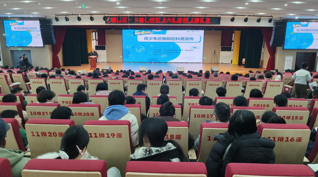 九江新闻网讯(黄凌云)为科学守护青少年视力健康,筑牢近视防控防线,2025年12月28日,濂溪区一中在德化校区莲韵楼二楼多功能报告厅举办青少年近视防控科普讲座直播课堂。现场邀请学生及家长代表共同参与,近2000名家长、学生通过线上平台观看讲座直播。活动由德化校区政教处主持,学府校区政教处共同参与。