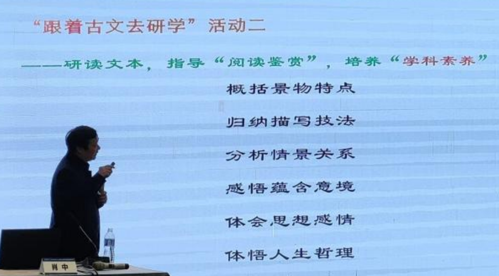 在深化课标理解方面,肖中老师的两场分享为老师们解惑。针对“核心素养落地”“大单元教学突破碎片化”等困惑,他结合案例拆解课标内涵、讲解设计技巧。其中“跟着古文去研学”理念令人深受启发,让我们明确可从研读作者、文本、语言实践、文化寻根四维度推进教学,通过多样活动让学生感受传统文化生命力。