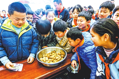 近日,中国植物学会“万人进校园”科普宣讲活动在浔阳区龙山小学报告厅举行。活动由江西省、中国科学院庐山植物园主办,以“小土豆的大世界”为主题,通过讲座、趣味问答、科普秀等环节,为师生们带来别样的植物科普体验,现场还设置了美食品尝与科普展览,让学生近距离感受小土豆的“科学世界”。(九江日报全媒记者 程鹏 摄)