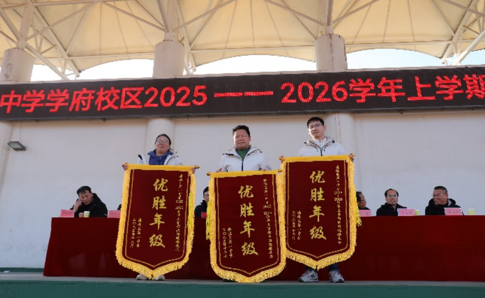 经学校领导与学生会综合评定,高三年级、高二年级和七年级荣获本次跑操展示“优胜年级”,相关年级主任上台领奖。
