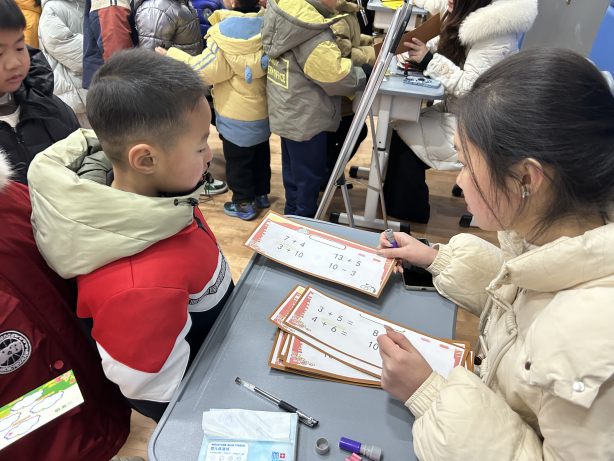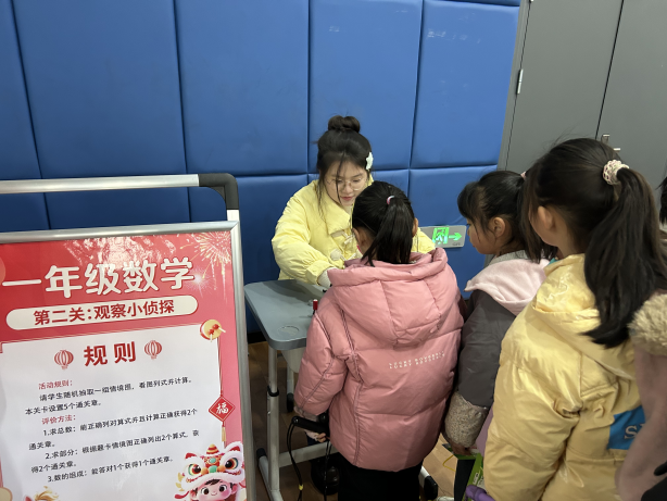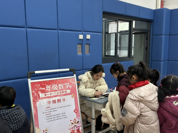 第一关“小小速算师”: 清脆的报数声此起彼伏,孩子们心算敏捷,对答如流,展现了令人惊喜的口算功底。