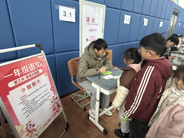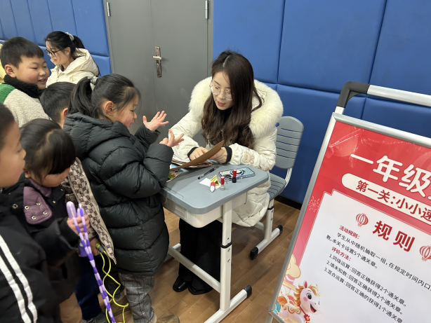 一年级乐考于1月21日率先登场。闯关活动融合了智育、体育、美育与劳动教育。孩子们变身“智慧小勇士”,勇闯三大趣味关卡。