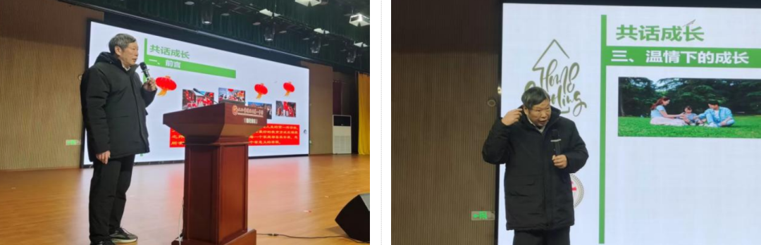 冷文义以“亲子互动小游戏”“寒假生活案例情景剧”等形式,将“家校的心灵对话”“温情下的成长”“热闹里的宁静”三大核心主题具象化,既用真实家庭场景拆解“高质量陪伴”的落地方法,又以趣味问答引导家长反思“分数焦虑”的误区,现场笑声与思考声交织。同时他结合《中华人民共和国家庭教育促进法》,给出寒假时间规划、习惯培养等实用建议,让专业内容变得易懂易践行。