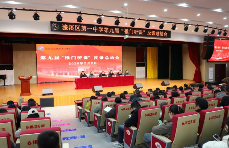 2026年2月2日下午,濂溪区一中第九届“推门听课”反馈总结会在德化校区莲韵楼二楼报告厅举行。黄应剑携校班子成员出席,各年级主任、教研组长及青年教师参加会议。会议由校长助理、教务主任户勇明主持。