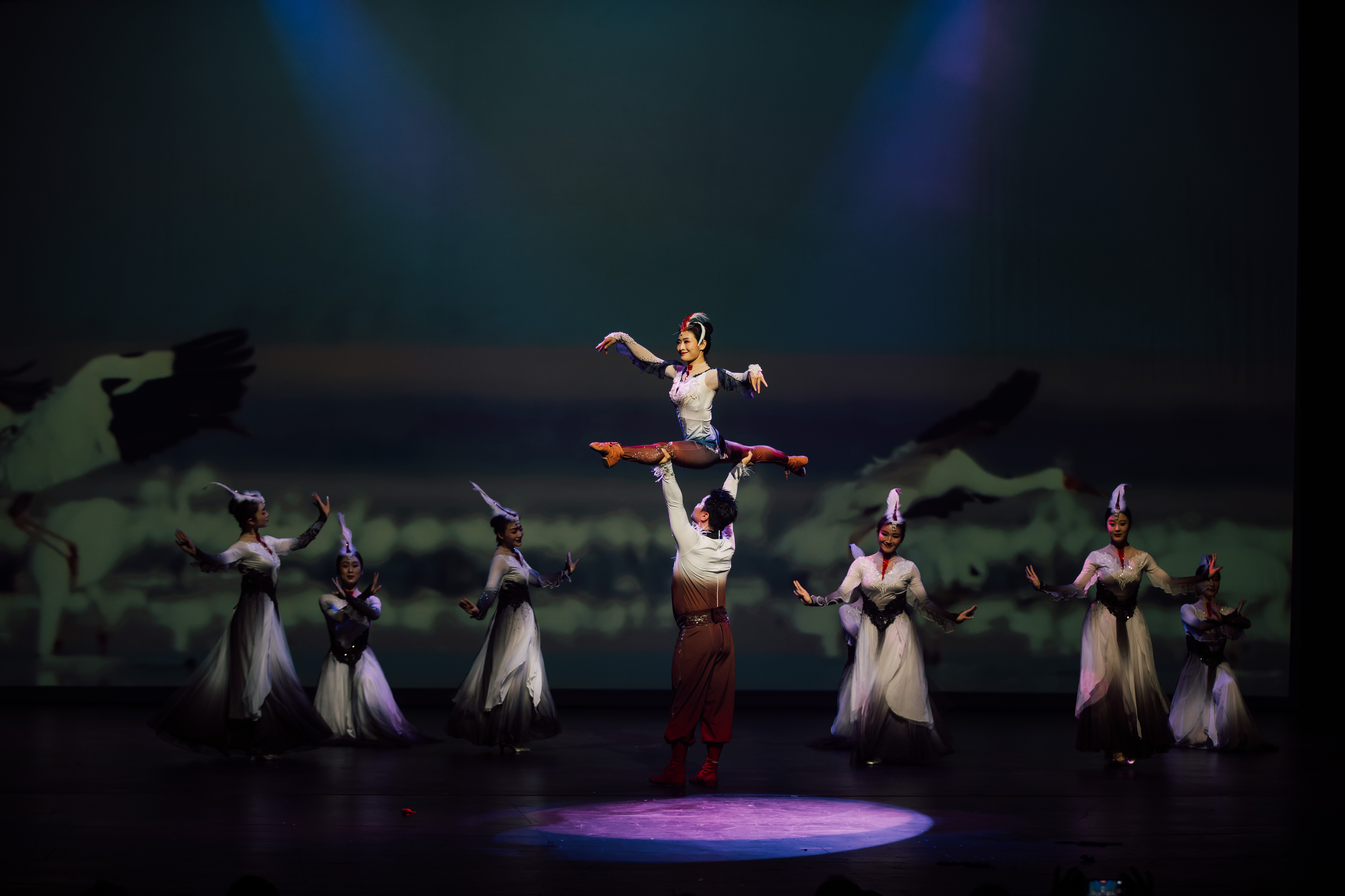 群舞《青花叠韵》中,舞者身着青花瓷元素服饰,以典雅舞姿演绎景德镇陶瓷“白如玉、明如镜”的艺术境界。