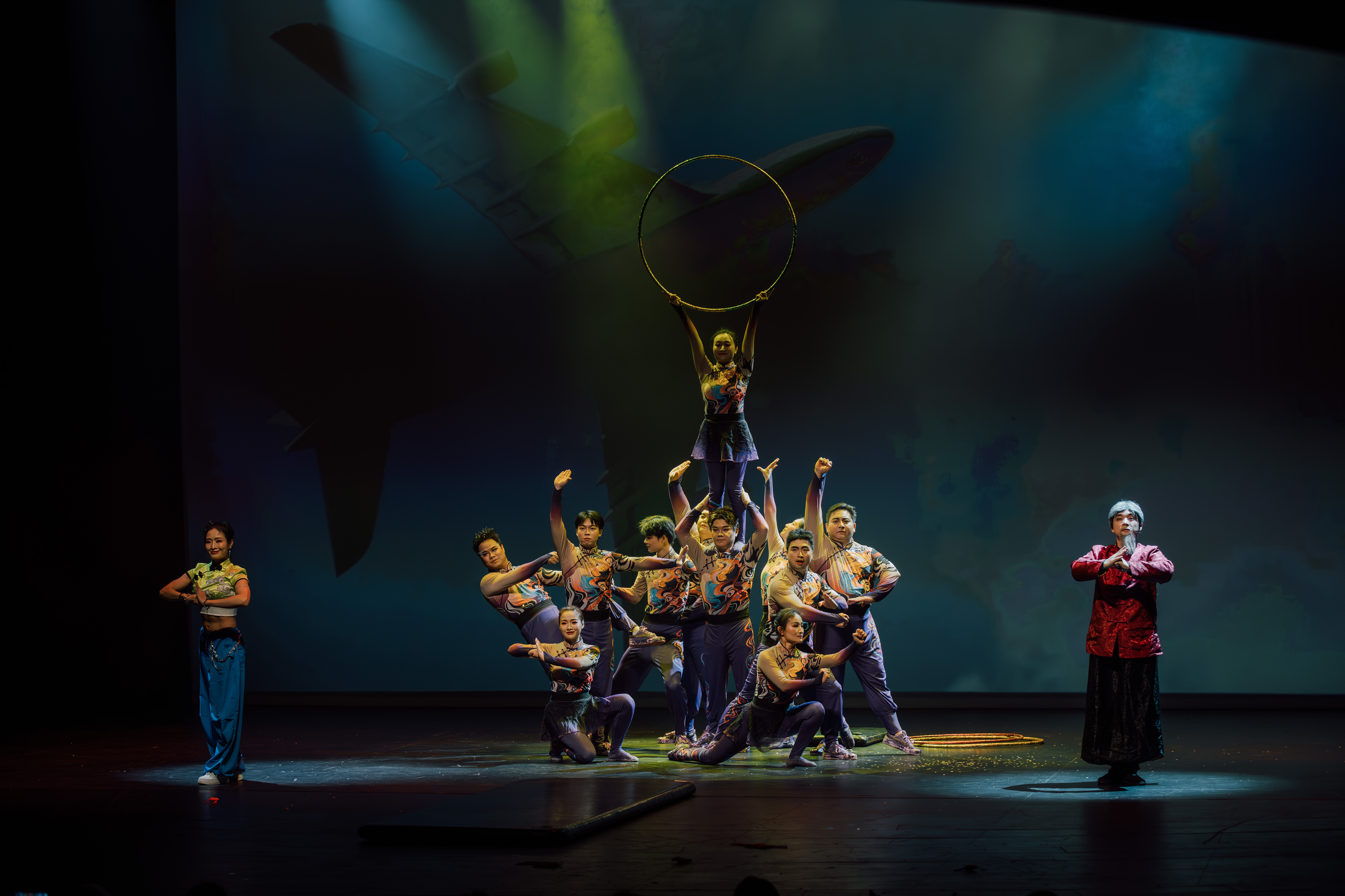 肩上芭蕾《鹤舞鄱湖》以高难技巧呈现鄱阳湖白鹤的灵动姿态,力与美的结合令观众屏息惊叹;木偶表演《长绸舞·梁祝》人偶合一,传递东方浪漫主义韵味;传统京剧《贵妃醉酒》以唱功与身段尽显国粹魅力。男子独舞《秦俑魂》将古典舞与武术相融合,展现中国古代武士的刚毅气概;情景魔术《古彩戏法·忆》以跨越时空的叙事,讲述非遗技艺的传承故事,当老艺人将刻有江西非遗纹样的中国环赠予学徒时,不少观众为之动容。