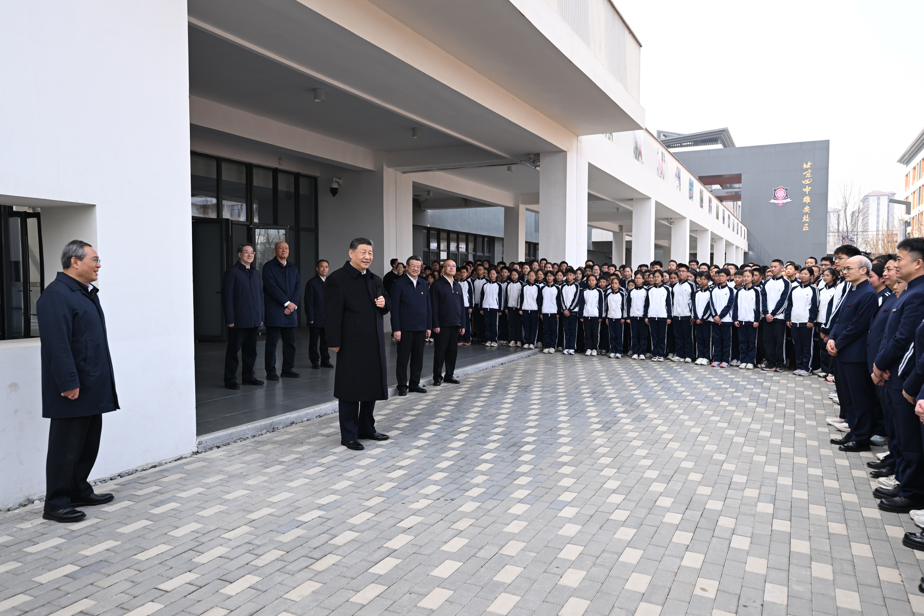 习近平总书记来到北京四中雄安校区,这是北京市援建雄安新区的“交钥匙”项目之一。