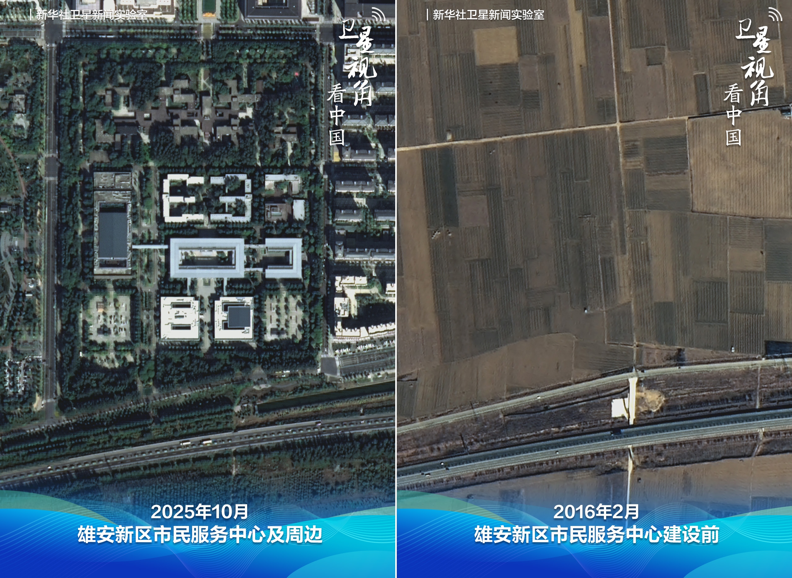 起步区,是雄安新区的主城区。夜光遥感下,闪烁的亮光和绵延的灯带见证了雄安新区的崛起。截至2025年底,雄安新区累计开发面积215平方公里,建设楼宇5300余栋,总建筑面积超5800万平方米。