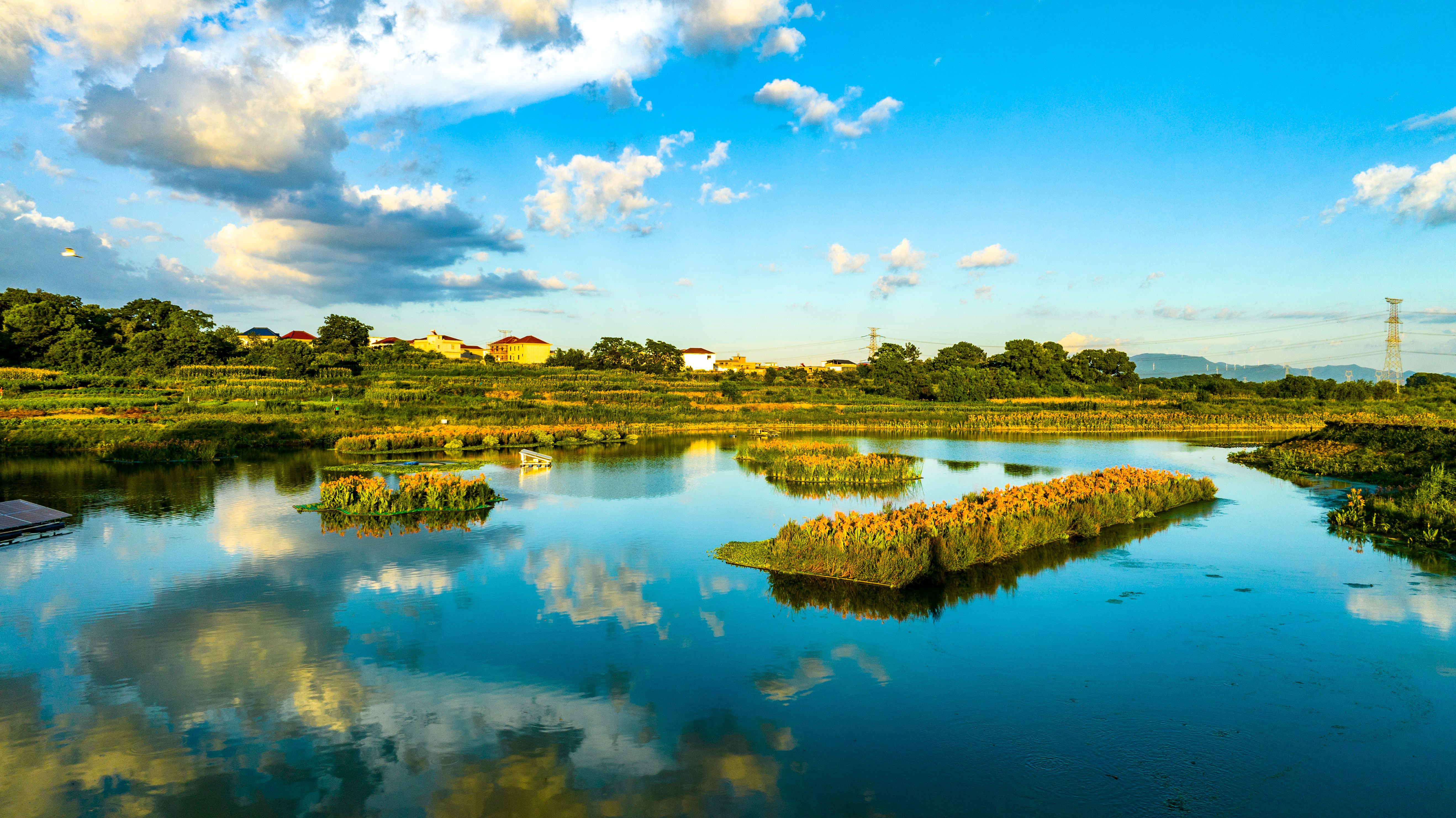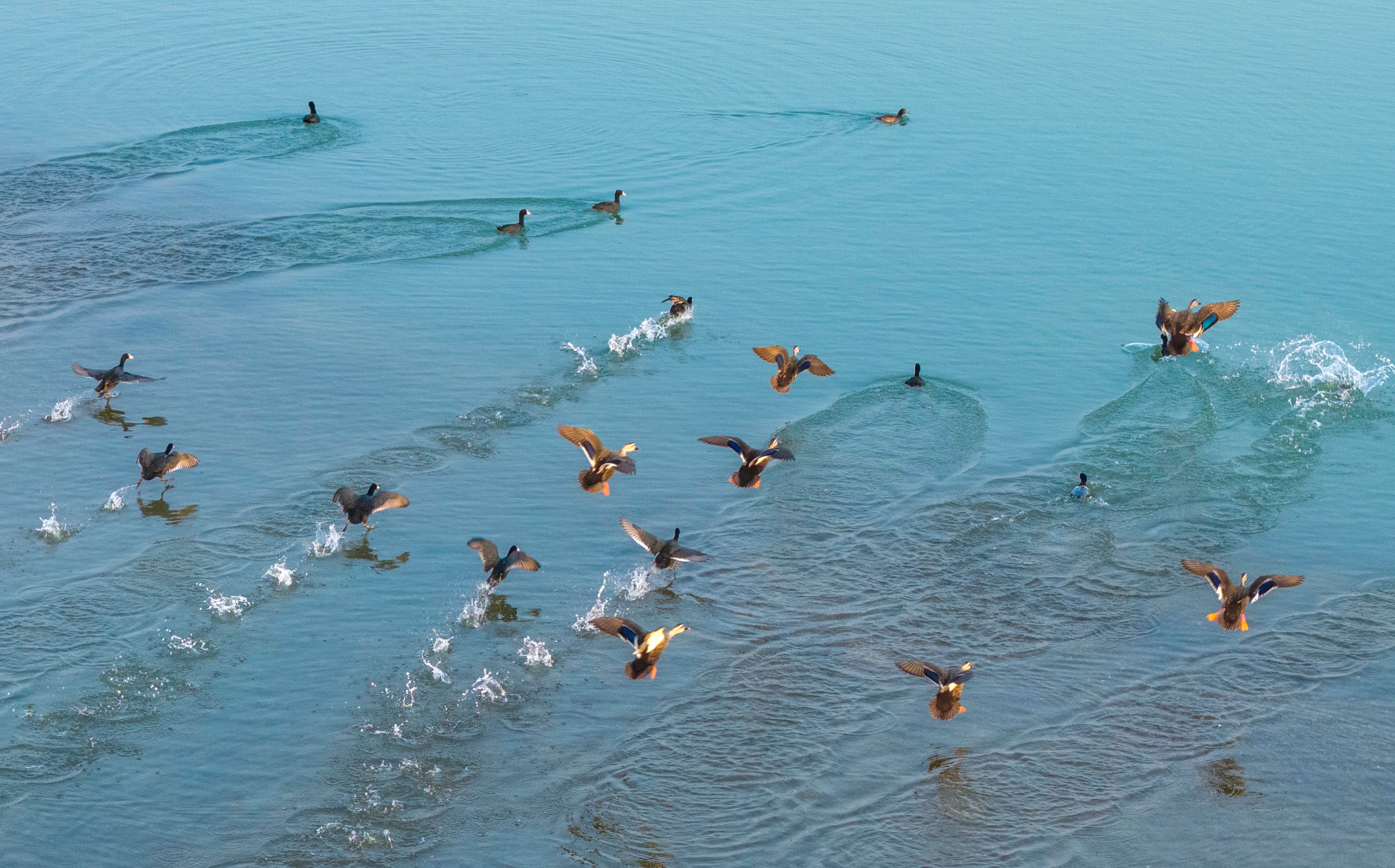 江西省九江市八里湖畔天碧水美,风光旖旎,鸟儿翩跹,构成一幅美丽的生态画卷。傅建斌摄
