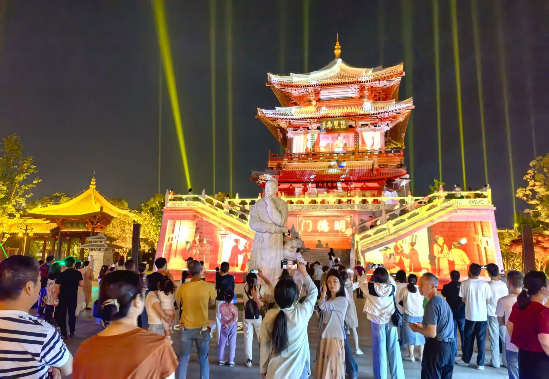 夜色中的长江国家文化公园九江城区段琵琶亭景点灯光璀璨,大批游客慕名而来。刘家摄
