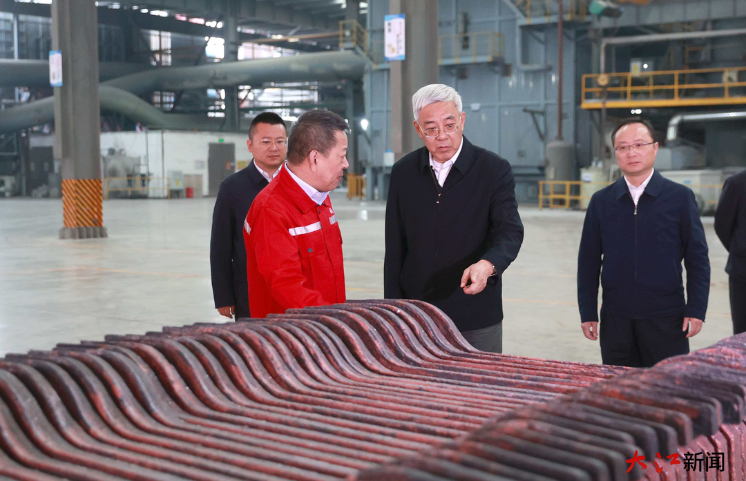 在上饶市横峰县,尹弘先后考察了江西和丰环保科技公司和江西兴南环保科技公司,走进企业展厅和车间,实地察看铜等金属再生资源回收利用和深加工情况,详细了解企业生产经营状况,勉励企业稳定再生铜精深加工规模,拓展多元原料来源,进一步贯通供应链、延伸产业链、提升价值链,推动再生铜产业做大做强。企业加快智改数转步伐,有效推进生产过程降本增效、节能降碳,尹弘察看企业调度和控制中心,鼓励企业坚定不移推进数字化转型,加大先进技术和数智装备应用力度,推动再生铜智能化、精细化、清洁化加工,全面提高资源利用效率和水平。