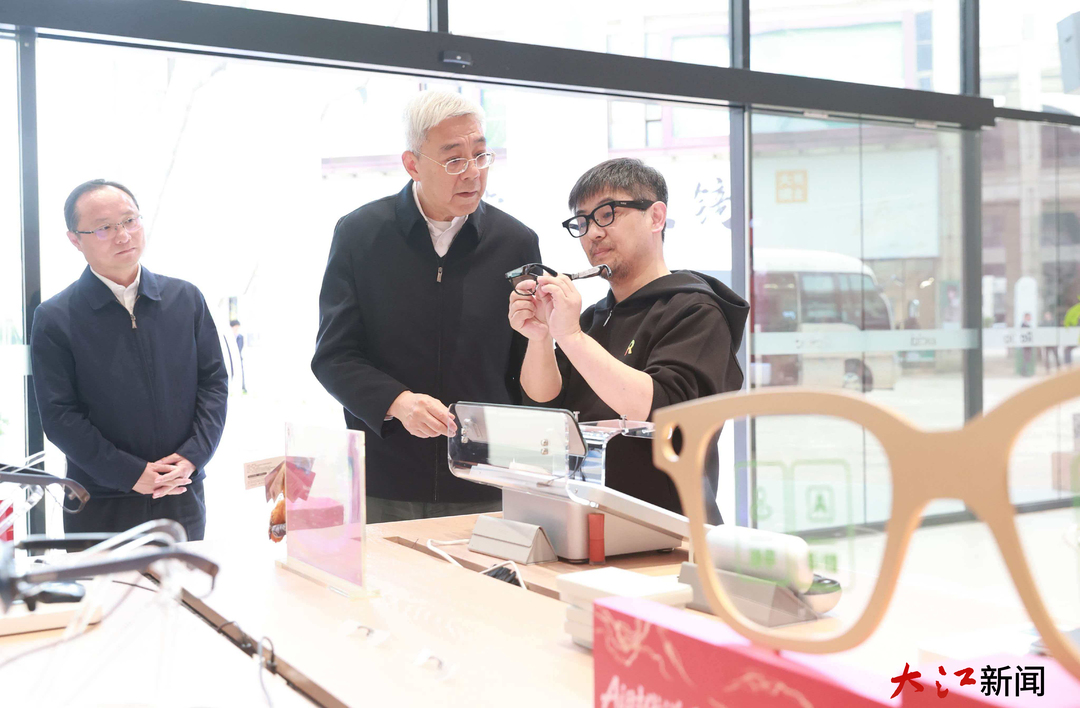 尹弘还来到灵伴科技余江品牌旗舰店,饶有兴致体验AI+AR智能眼镜功能,了解灵伴科技智能眼镜生产基地项目推进情况,鼓励企业负责人深耕细分赛道,推动智能眼镜与传统眼镜产业深度融合,不断提高产品市场竞争力。