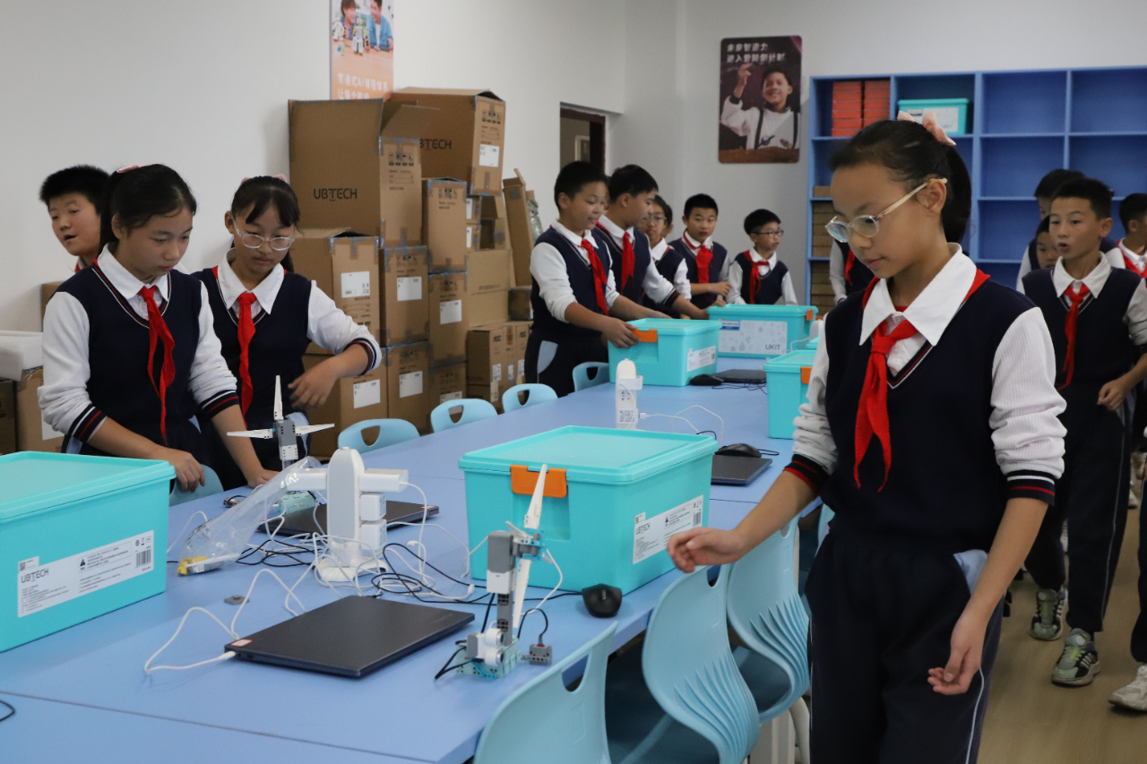 在人工智能实验室,同学们迎来了一次动手动脑的实践体验——学习智能风扇的制作。通过老师的耐心指导,他们初步了解了简单的传感器原理、编程逻辑以及其在日常生活中的应用。同学们专注投入,积极尝试,在亲身体验中领略了人工智能技术的奇妙与智能控制的便捷。