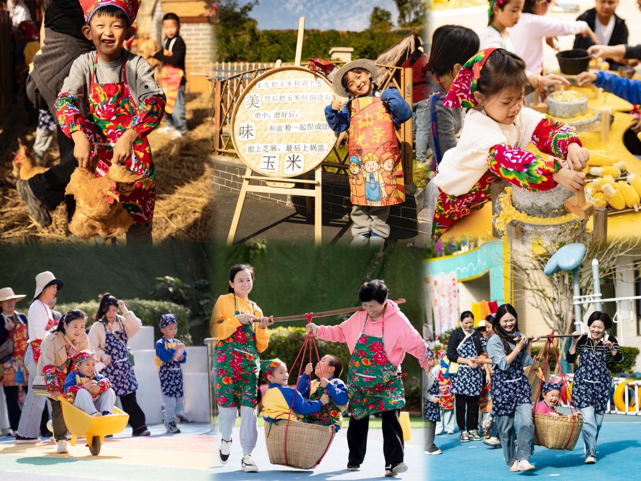 抓鸡、石磨玉米、运蔬菜、插秧、挑箩筐、“母鸡”下蛋等9项农耕运动成为现场的“快乐密码”。亲子在紧密协作中感受着农耕文化的独特魅力,石磨玉米环节尤其受欢迎,孩子们认真剥粒转磨,空气中弥漫着玉米汁的清香。