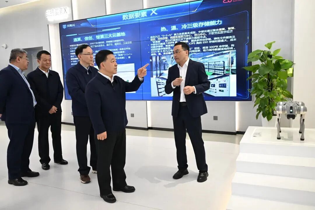 在中国电信鄱阳湖智算中心,叶建春听取项目建设进度、算力应用场景等介绍,要求聚焦实施“人工智能+”行动,加快推进算力基础设施建设,为筑牢我省数字经济算力底座贡献更多力量。他指出,算力是数字时代的新质生产力,要统筹算力规模建设和空间布局,不断拓展应用场景、完善产业生态,推动我省算力产业健康快速发展。叶建春来到加快建设中的九江石化产业园,了解炼化一体化项目建设进展情况,要求当地用心做好服务,强化要素保障,在确保安全的前提下推动项目早日建成投产。他指出,高水平科技创新是九江石化转型升级的重要引擎,希望企业持续加大研发投入,抢占行业科技发展制高点,加快构筑面向未来的竞争新优势。